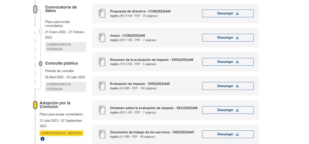 Los documentos se pueden consultar en el enlace: https://ec.europa.eu/info/law/better-regulation/have-your-say/initiatives/13278-Vehiculos-comerciales-pesos-y-dimensiones-evaluacion-_es
