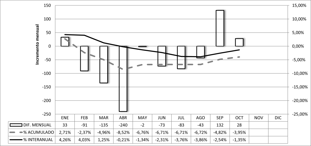 Los remolques y semirremolques suben en octubre, con 1613 ud (+1,8%, 1585), 11518 ud en los primeros diez meses (-3,95%, 11992) y 13976 veh/año en el interanual (-1,35%, 14167).